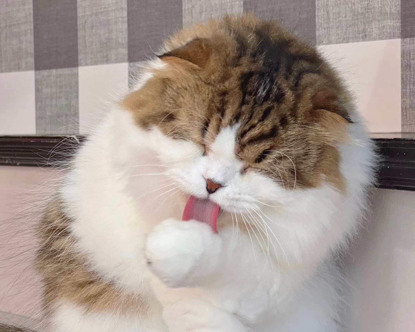 優雅に毛繕いする猫ちゃんを写真に収める。